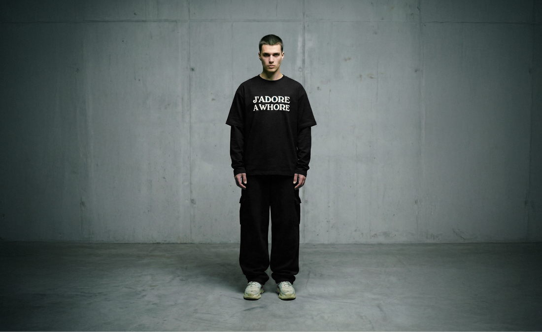 J'ADORE A WHORE TEE [GREY]