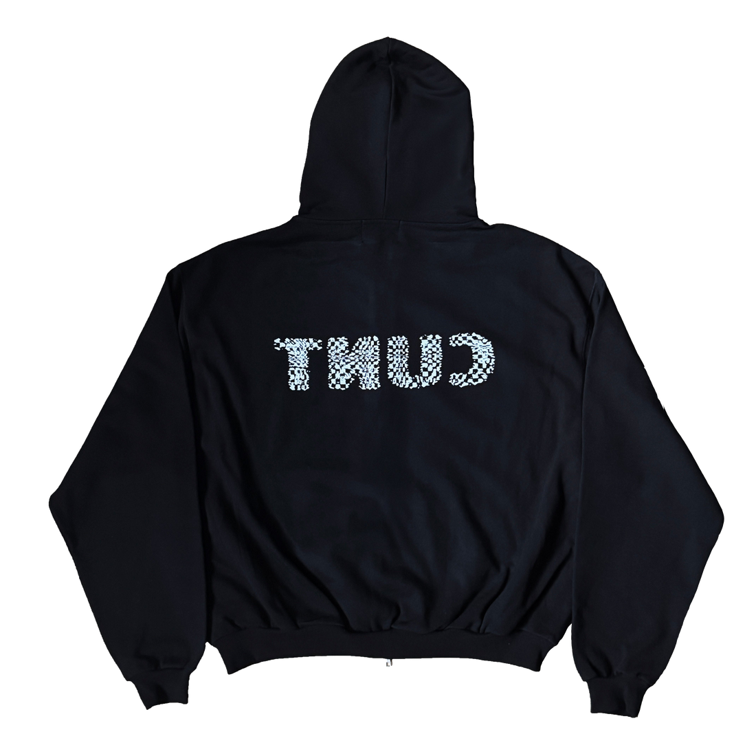 WARPED LOGO ZIP-UP HOODIE [CHARCOAL]