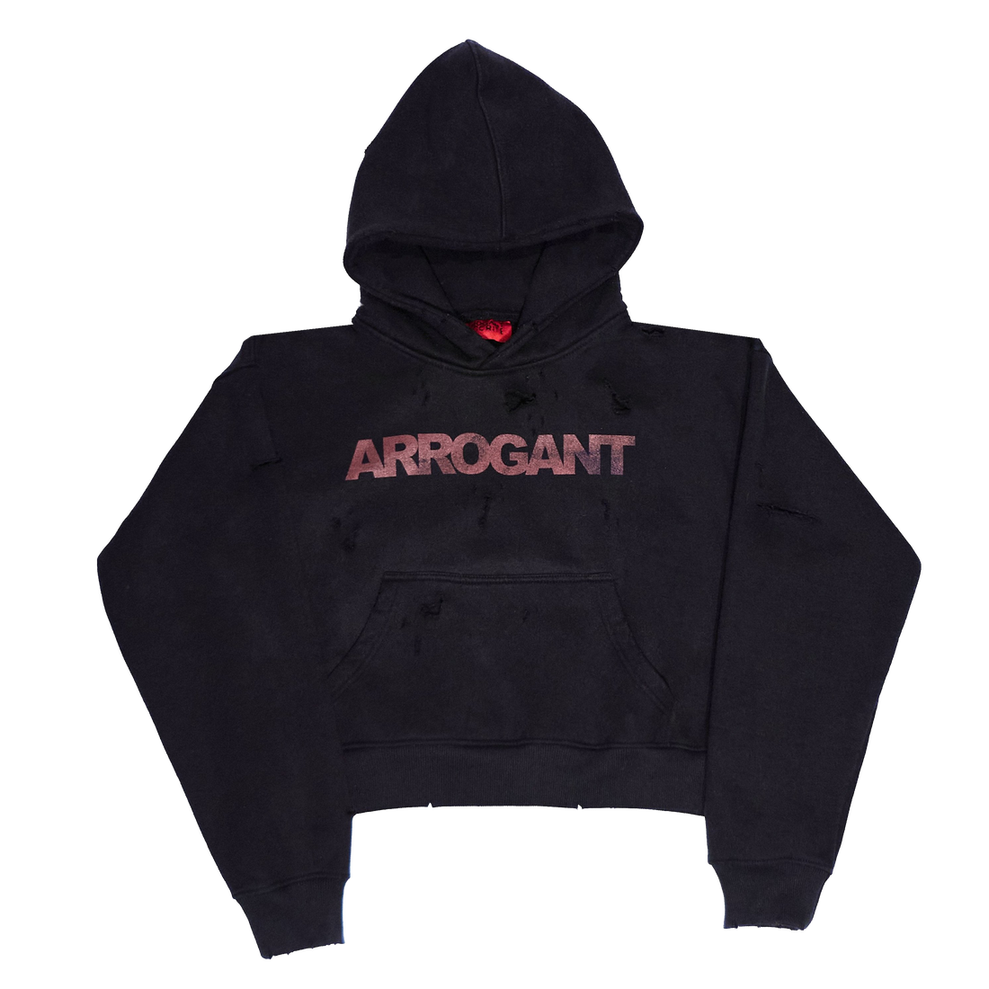DISTRESSED 'ARROGANT' CROPPED HOODIE